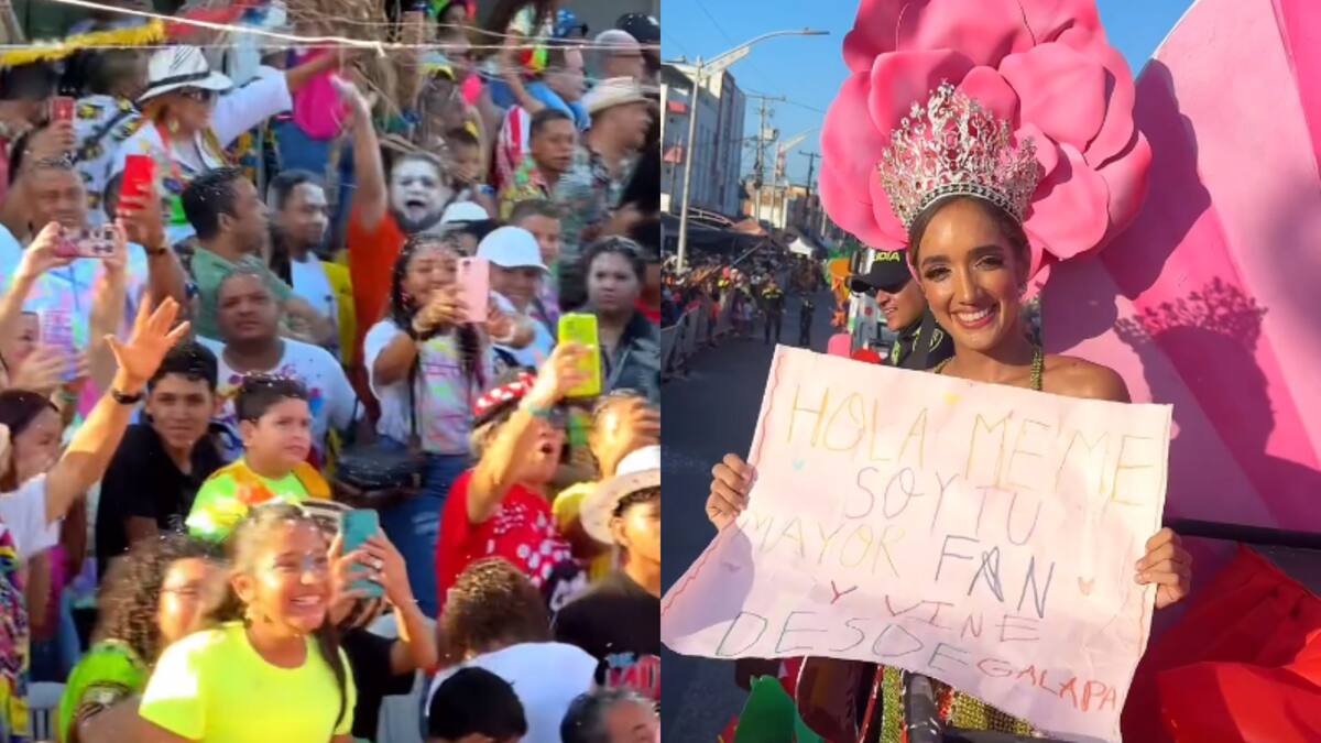 Durante su recorrido por la calle 17 la reina del Carnaval de Barranquilla, Melissa Cure, fue sorprendida por una pequeña fan que viajó desde el municipio de Galapa solo para ver a la soberana de las carnestolendas.