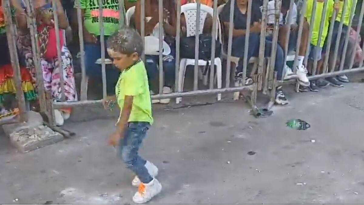 El pequeño vestido con camisa neón, tenis, jean y un colorido collar como accesorio se dejó llevar por el ritmo de la música folclórica que acompañaba a una comparsa que transitaba en ese momento, y sacó los verdaderos ‘pasos prohibidos’.