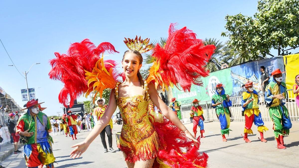 Usando un vestido de nombre ‘Fuego de la tradición’ le hace un reconocimiento a las décadas que llevan los oriundos de Sabanalarga poniéndole el calor de las llamas a las carnestolendas.