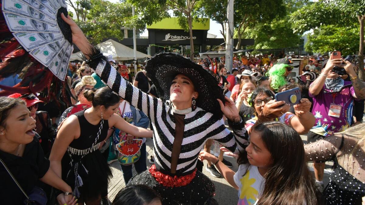Con velos oscuros que cubren sus rostros y lágrimas ficticias que parecen tocar sus mejillas, la reina Melissa Cure junto a otras viudas lloran la partida de Joselito, expresando en su luto el sentir de toda Barranquilla.
