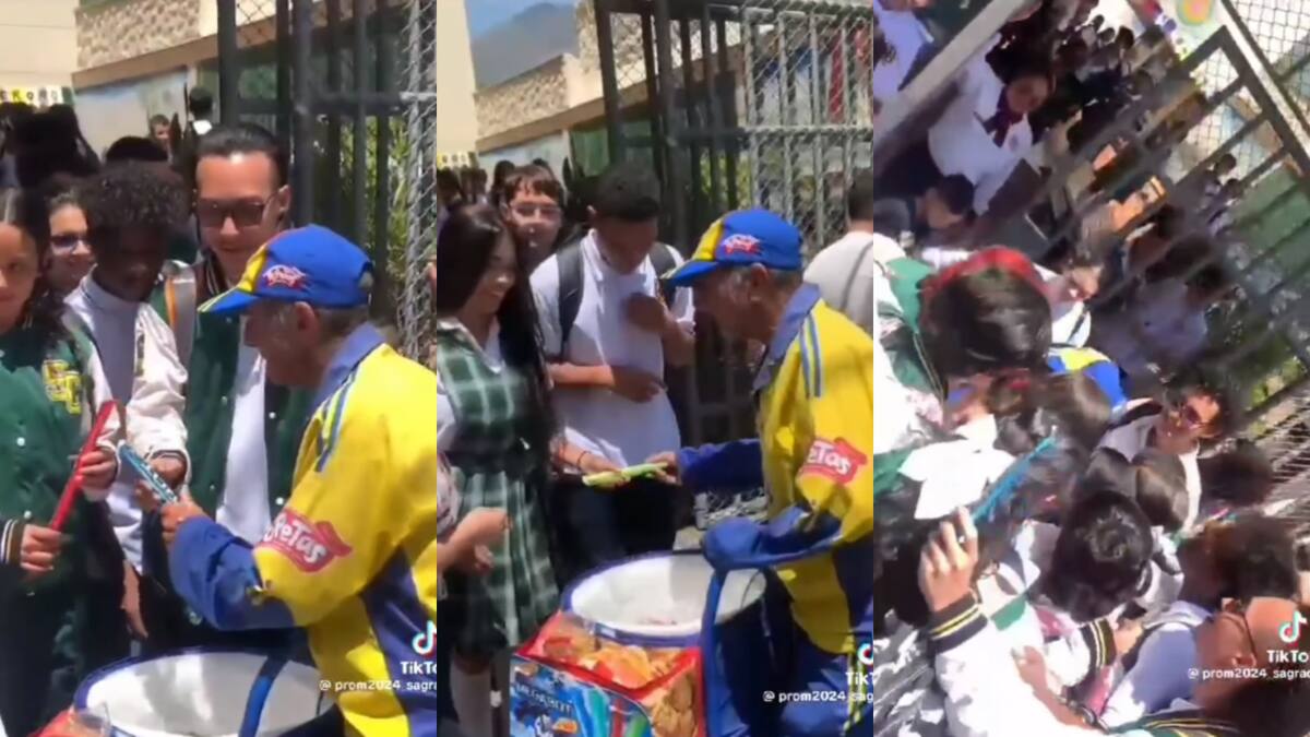 Las redes sociales están conmocionadas con la hermosa acción de un grupo de estudiantes de un colegio al apoyar a un vendedor ambulante comprándole toda la mercancía que tenía el hombre dentro de su carrito.