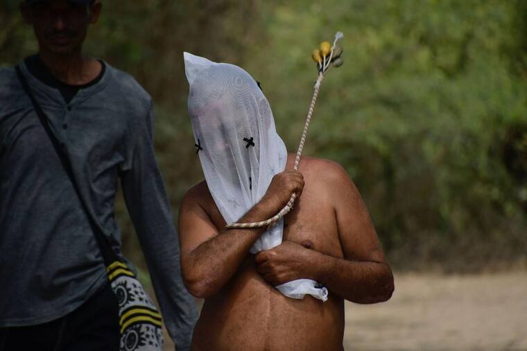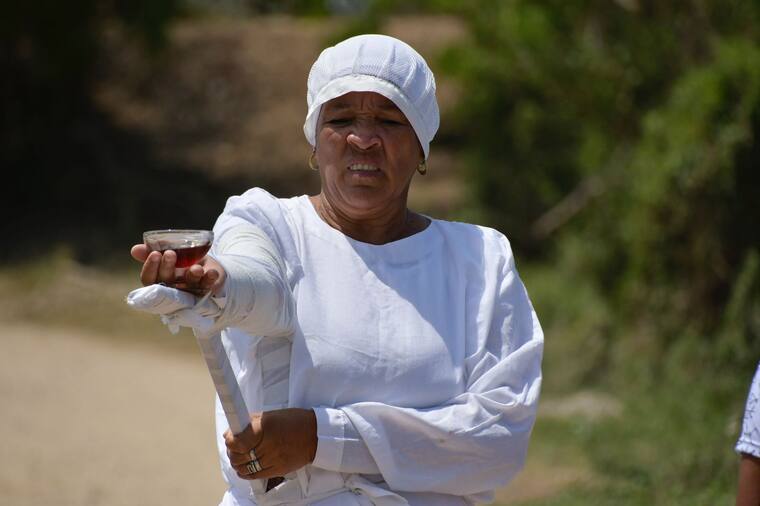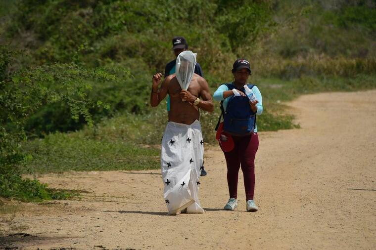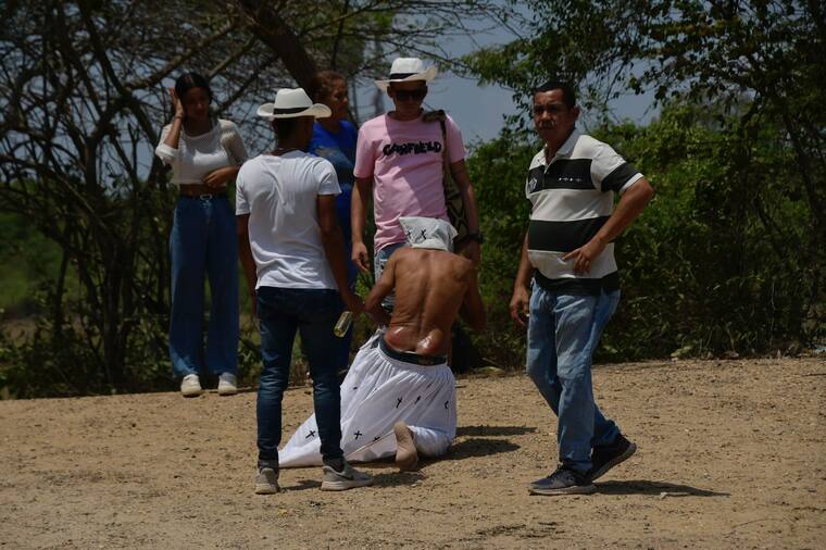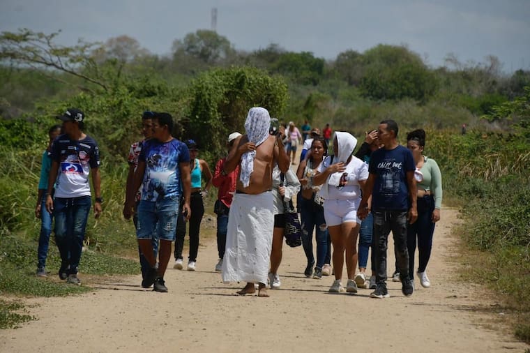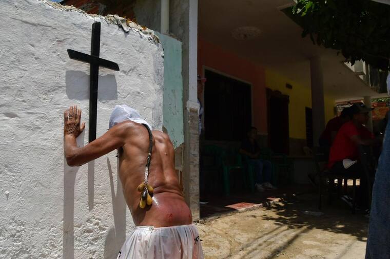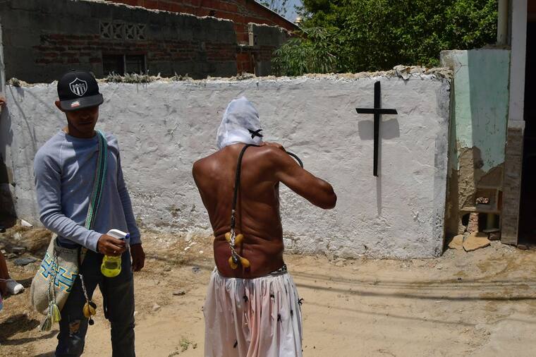 Como es tradición cada Viernes Santo estas personas caminan sectores de Santo Tomás para pagar su manda a Dios.