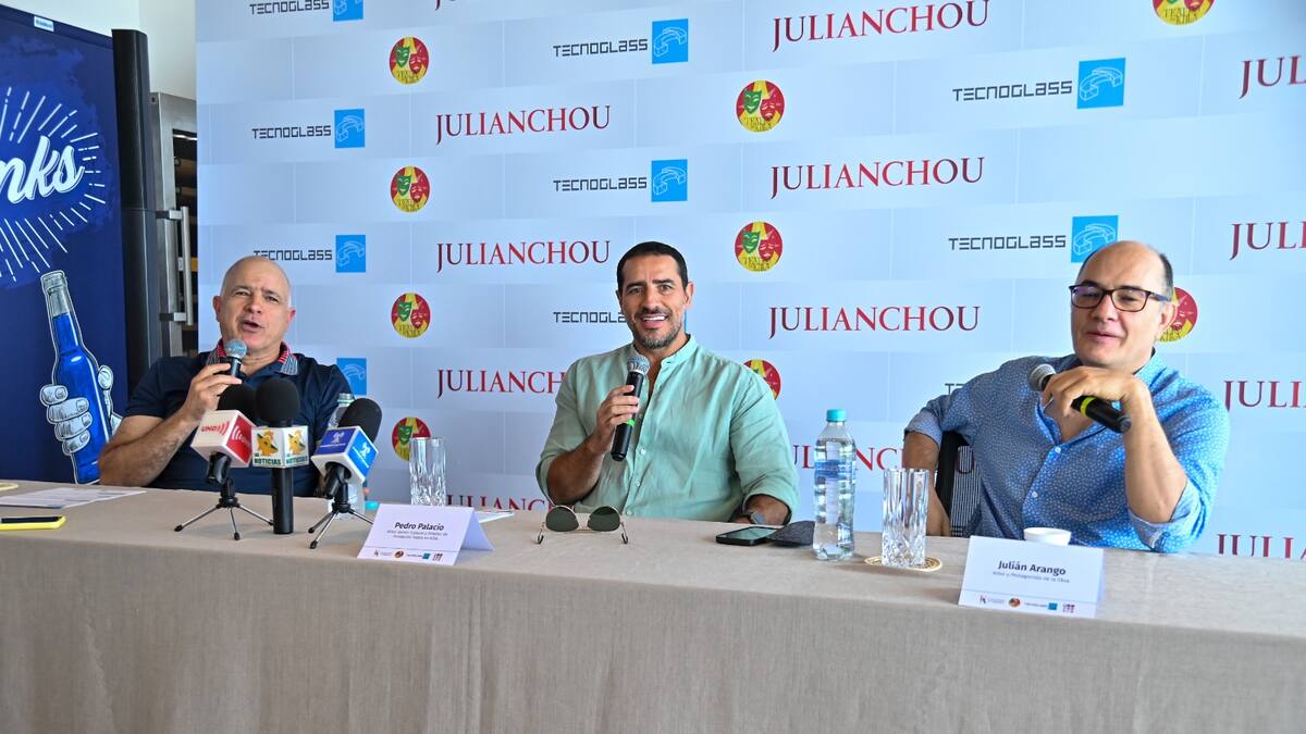 En la rueda de prensa estuvieron presentes los actores Julián Arango y Pedro Palacio, junto al CEO de Tecnoglass, Christian Daes, quien patrocina esta propuesta cultural.