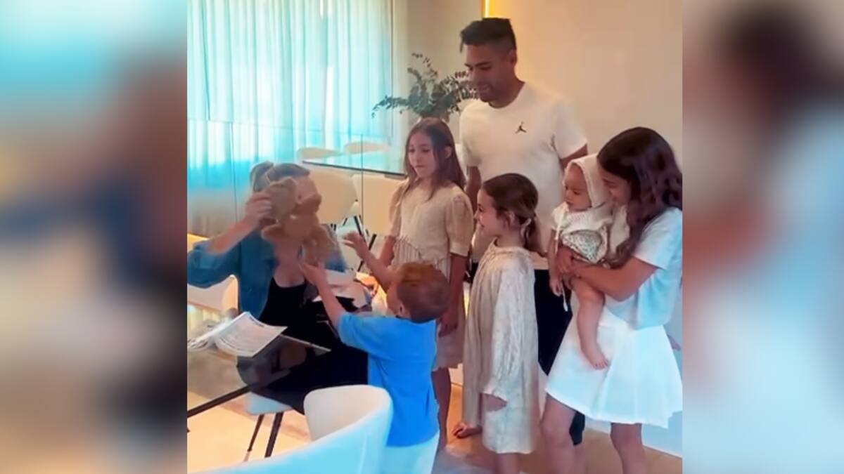 Lorelei Tarón compartió un conmovedor video donde Falcao se acerca a sus pequeños, quienes están entretenidos jugando en el suelo, y los invita a participar en la sorpresa para mamá.