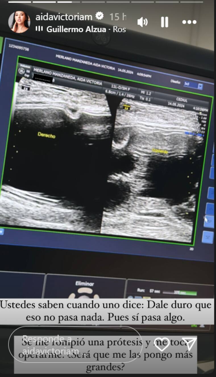 Sin embargo, la joven publicó en sus historias de Instagram una fotografía que preocupó a sus seguidores. “¿Ustedes saben cuando uno dice: ‘Dale duro que eso no pasa nada’?, pues sí pasa algo. Se me rompió una prótesis y me toca operarme. ¿Será que me las pongo más grandes?”, escribió Merlano.