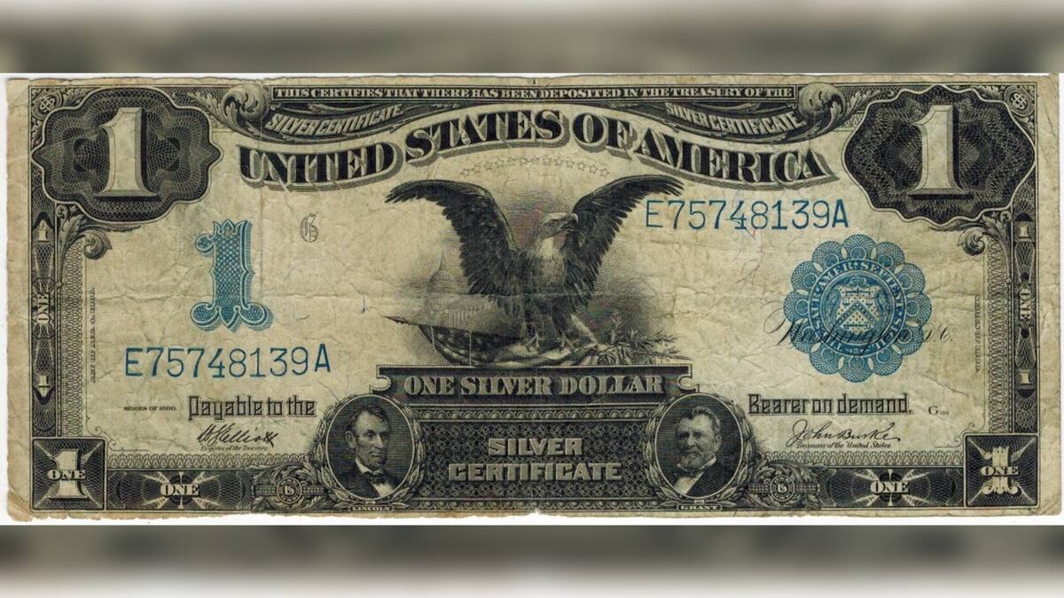 El billete de un dólar emitido en 1899, es conocido como Black Eagles (águilas negras), tiene un certificado de plata y presenta las imágenes de los presidentes de Estados Unidos Abraham Lincoln y Ulysses Grant.