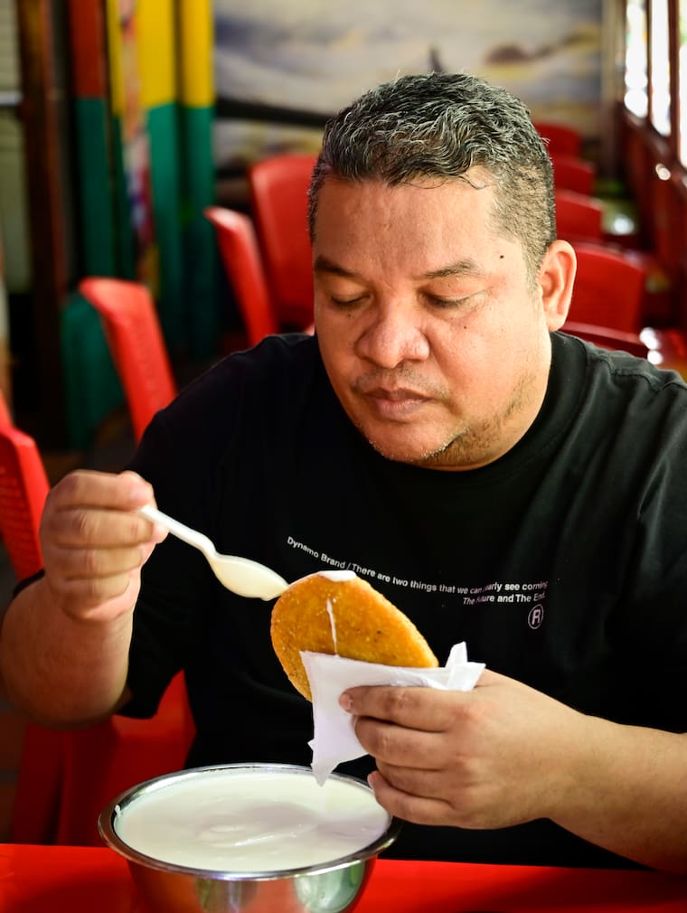 “¿Qué sería de la arepa de huevo sin su respectiva dosis de suero costeño?, dice Julián Manotas mientras desayuna en la Frutera La Arenosa, ubicada en el norte de la ciudad. Para el hombre de 37 años, ninguna fritura sabe igual sin esta típica salsa.