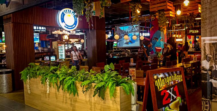 Con una oferta gastronómica, temática y de ambiente muy distinta. En el tercer piso, ahí mayormente hay opciones de comidas rápidas, su gran atractivo, la pantalla gigante para ver el partido, acompañado de sistema de sonido que se convierte en un plan ideal.