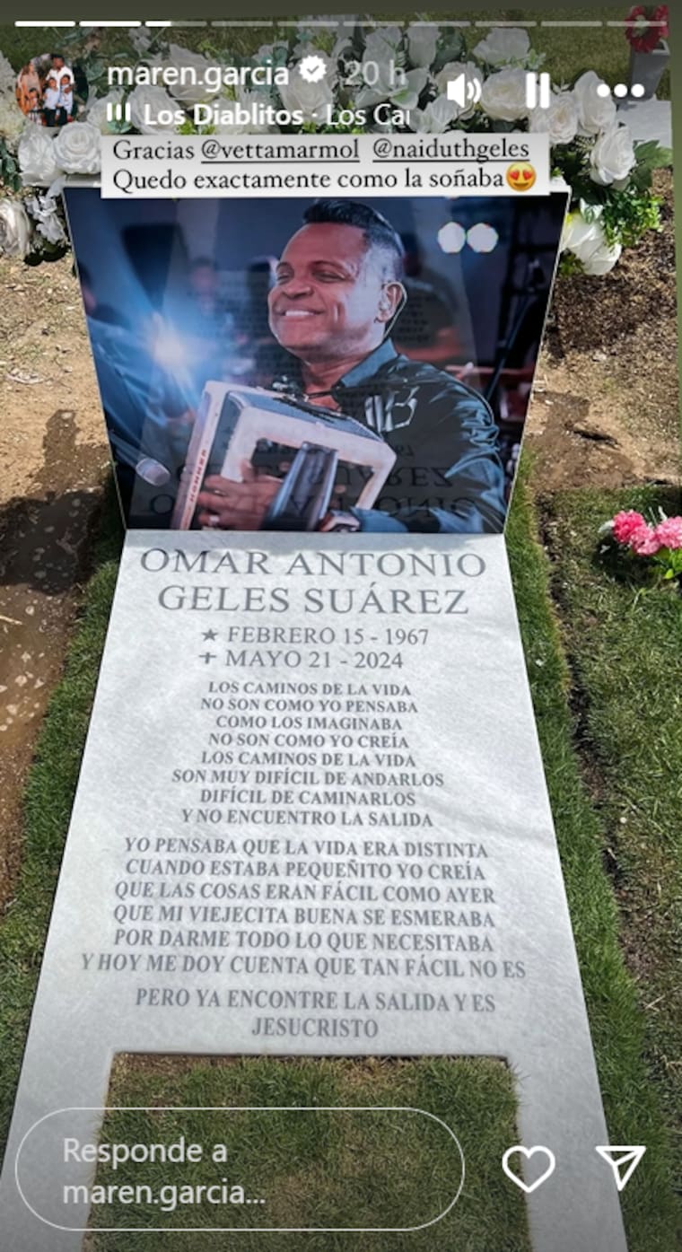 García publicó recientemente en sus historias de Instagram cómo luce ahora la tumba de su esposo. En el video aparece ella limpiando la tumba, con flores blancas, una foto del artista, y un gran mensaje.