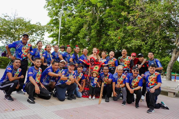 La danza más antigua del Carnaval de Barranquilla le dio la bienvenida a la soberana, que de inmediato se unió al baile, agarrada de brazos con cada integrante, con palmas y cantos que simulan una ceremonia ancestral.