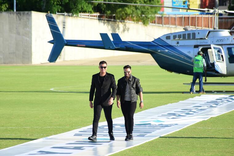 Para la presentación del álbum, en el que tiene como acordeonista a Lucas Dangond, que durante años tocó al lado de Silvestre Dangond, el dúo llegó en helicóptero al estadio Romelio Martínez de Barranquilla.