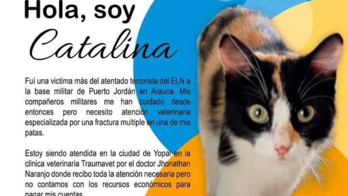 Los soldados rápidamente la llevaron al servicio de urgencias veterinarias, donde confirmaron que ‘Catalina’ se recupera satisfactoriamente. Los uniformados esperan tener devuelta a la gata, que los acompaña en las rondas de día y de noche, y suele ser un apoyo para ellos.