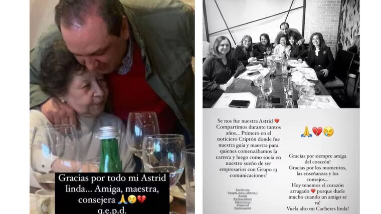 En toda su experiencia siempre tuvo la dicha de estar acompañado de Astrid. “Gracias por todo, Astrid, linda… Amiga, maestra, consejera. Q.E.P.D. Se nos fue Astrid, compartimos durante tantos años… Primero en el noticiero Criptón, donde fue nuestra guía y maestra para quienes comenzábamos la carrera y luego como socia de nuestro sueño de ser empresarios con Grupo 13 comunicaciones”.