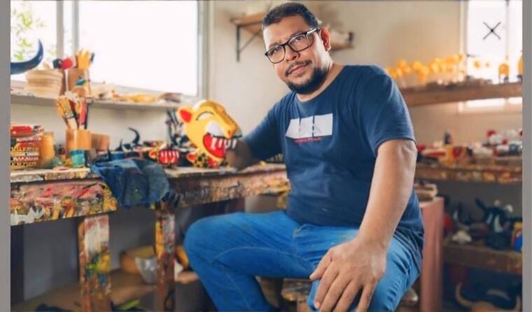 Trabajó junto a su padre en su primer taller hace más de 37 años, aprendiendo el arte de tallar y darle volumen a la madera con acabados y detalles. Además, impulsó proyectos de repoblamiento maderable, garantizando la sostenibilidad de la ceiba roja, materia prima fundamental para la creación de máscaras.