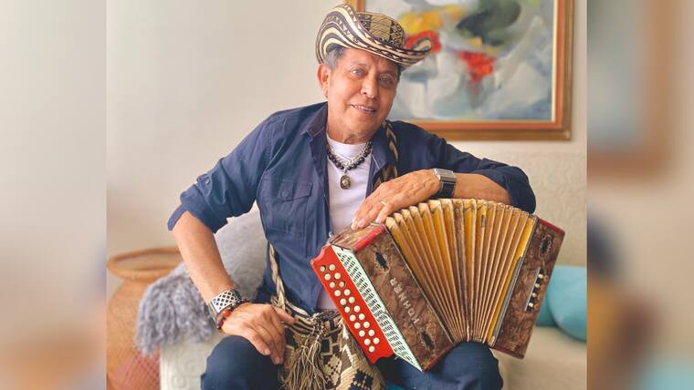 También usaba una mochila arahuaca terciada, muestra fiel de su orgullo por sus raíces indígenas. Además en su maleta de viajero reciente no podían faltar sus 12 acordeones, sí, una docena de instrumentos de fuelle, con las que respaldaba la voz del cantante Carlos Vives.