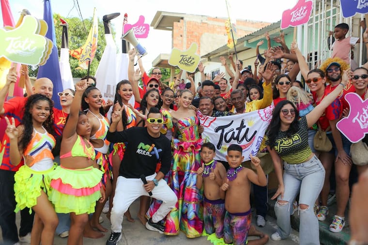 La Reina del Carnaval de Barranquilla, Tatiana Angulo Fernández De Castro, sigue llevando a los barrios de Barranquilla la alegría y el espíritu carnavalero con sus Caravanas Bacanas.