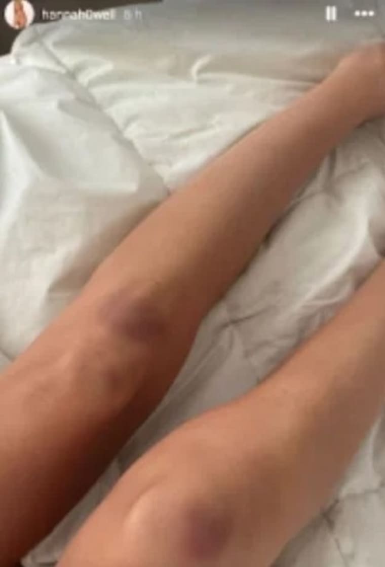 Una de las imágenes que más causó impacto entre sus seguidores es en la que Hanna Howell muestra sus dos piernas y en una de ellas se ve un moretón.
