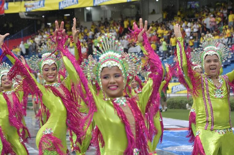 Ese jolgorio y goce propio del barranquillero no solo se hizo sentir en las esquinas y terrazas. Adentro del ‘Coloso de la Ciudadela’, una hora y media antes de que el balón empezara a rodar, unos talentosos danzantes aparecieron para mostrarle al mundo como se baila en esta Puerta de Oro.