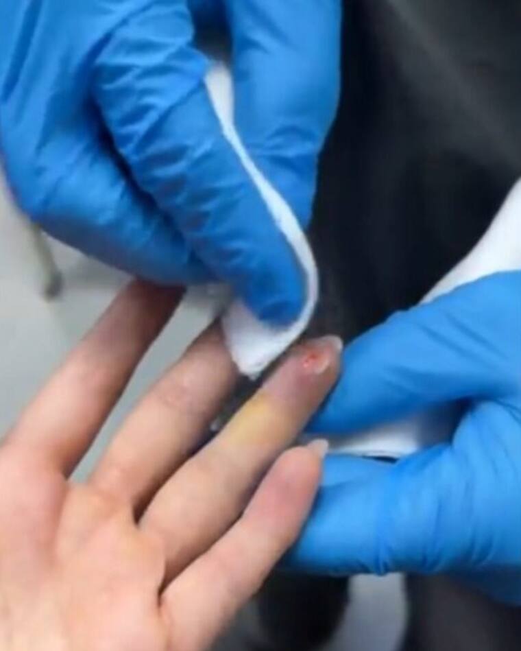 “Hola, me machuqué”, escribió sobre la imagen, en la que también se veía que ya estaba siendo atendida por personal médico.