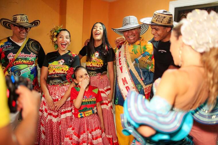 Son tres generaciones de la familia Mendoza. “Mis 8 hijos y 23 nietos son mi orgullo y a ellos les dejo este reconocimiento reina. Muchas gracias por la iniciativa y esta es tu cumbiamba pa pasarla bacano”, dijo emocionado Ubaldo.