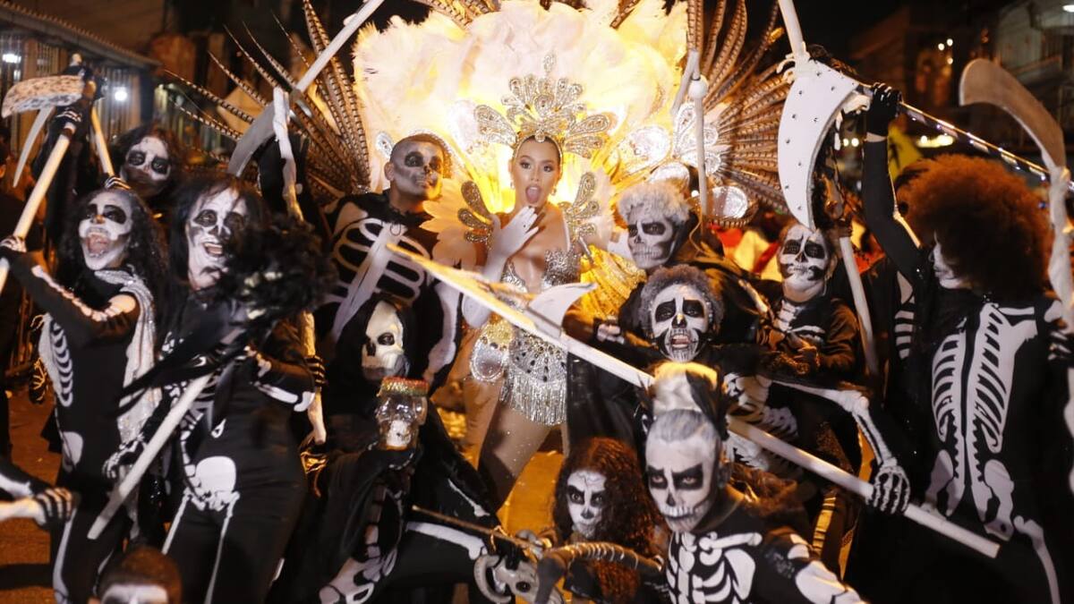 México tiene un fuerte arraigo cultural con la parca, al punto que se hacen multitudinarios desfiles y hasta construyen altares. En Soledad, Atlántico, ocurre algo similar con el Ceremonial de la Muerte, desfile que se cumplió la noche de este lunes por las calles de este municipio, para celebrar así 27 años de una tradición que en vez de aterrar a propios y visitantes, se convierte en una oportunidad para enviar un mensaje positivo, el cual en esta ocasión fue dado por la reina del Carnaval de Soledad 2025, Daniela Muñoz Iglesias, quien entre versos dijo: “La fiesta a mí nadie me la daña, por mi pueblo lucharé, así que agarren las guadañas, que yo los venceré”.
