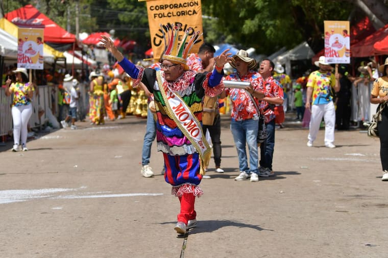 Comandando a su semillero del Cumbión de Oro, quienes lo escoltaban dando un show majestuoso de tradición, el Momo quiso hacer un homenaje a los más pequeños de la fiesta con un vestido colorido y de mucho brillo.