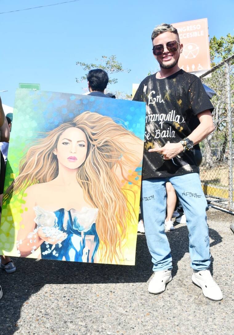 Oscar Daniel, artista plástico de Montería, llegó a Barranquilla con una misión clara: entregar en manos de Shakira un retrato que pintó con dedicación y admiración. Con un cuadro de 1.20 por 60 cm, hace fila en los accesos del estadio, con la esperanza de que lo dejen pasar con su obra.