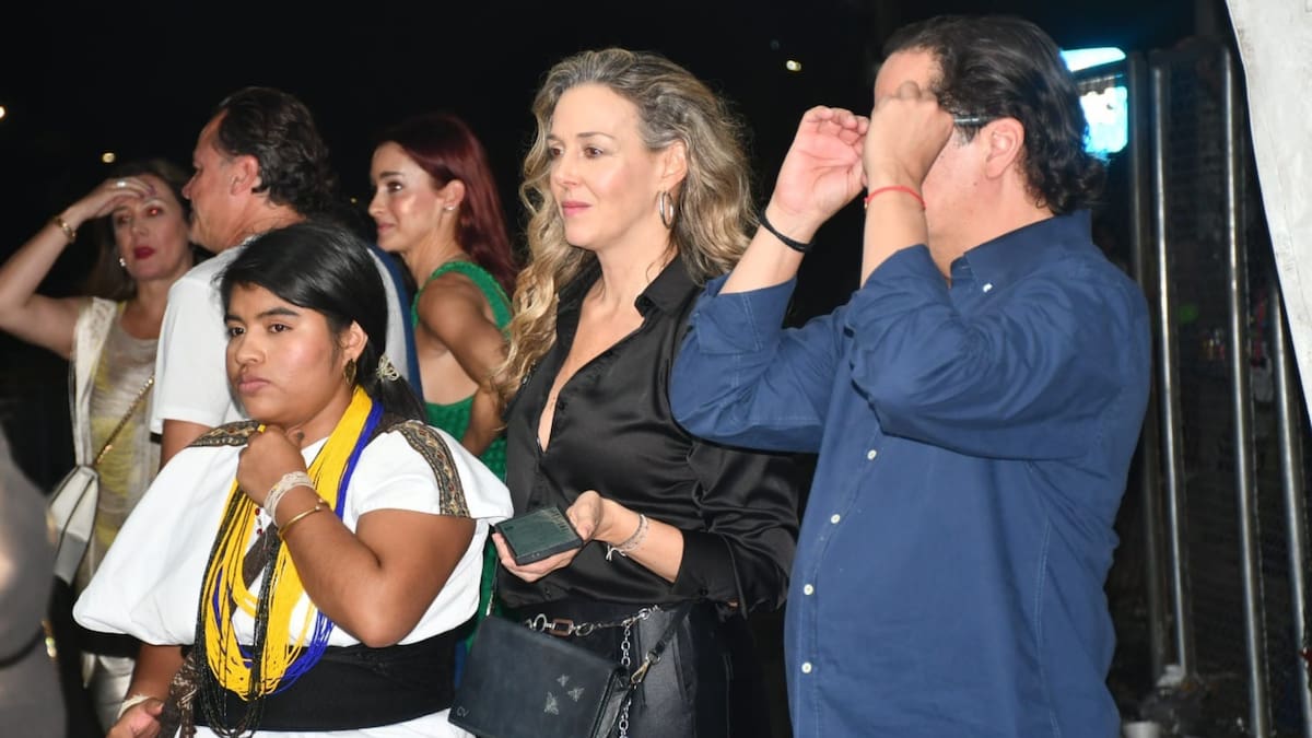 Entre los últimos en acceder estuvo la exreina Claudia Helena Vásquez, esposa de Carlos Vives, quien ingresó por la zona VIP acompañada de la modelo Tuti Barrera y escoltada por seguridad.