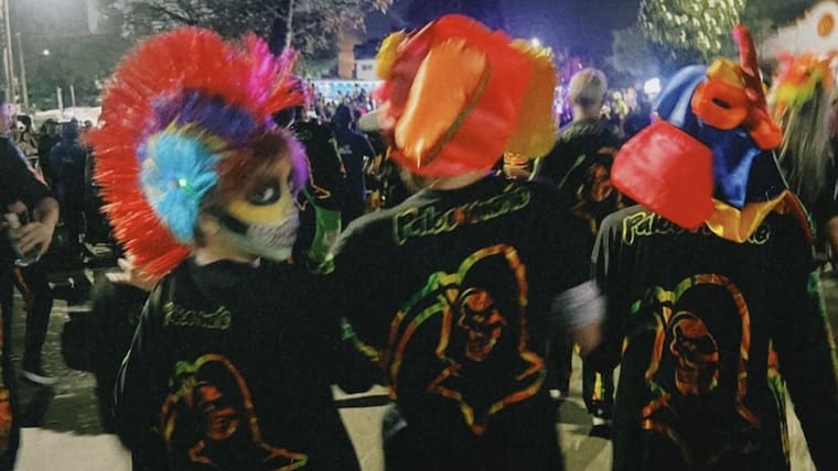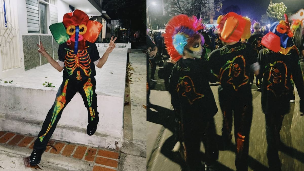 La barranquillera y sus pequeños se camuflaron entre la comparsa ‘Palo e’ Muerte’, un colectivo conocido por su estética de esqueletos danzantes.