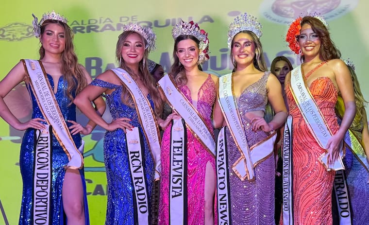 Darling Jiménez, periodista de El Heraldo, es la virreina; Natalia Gutiérrez, de Marina Stereo, primera princesa; María Hernández, de Uniautónoma, segunda princesa, Carolina Guerrero, de Killa News, tercera princesa, y Katherin Zúñiga, de Canal Cartagena, reina del Carnaval de los Periodistas Cartagena.
