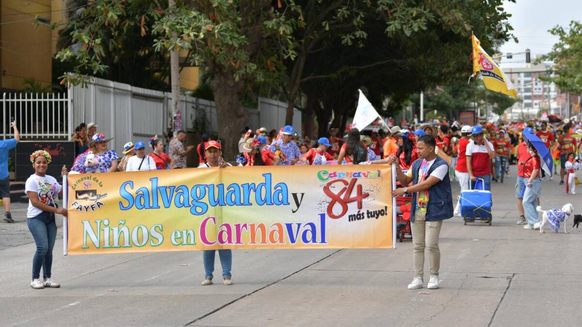 El desfile de Salvaguarda y Niños en Carnaval inició a las 9:30 a. m. en la calle 84 con carrera 47. Siguió por toda la calle 84 hasta la carrera 64 y finaliza en el parque de la Electrificadora, donde los pequeños actores del Carnaval disfrutarán de una jornada recreativa.