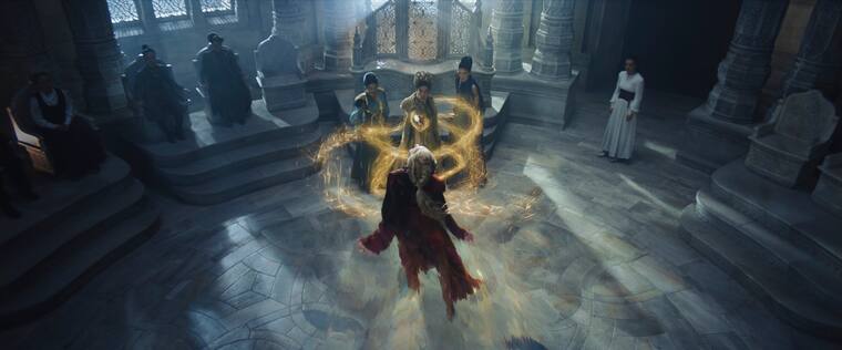 La relación entre Rand y Moiraine (Rosamund Pike) también se transforma. La Aes Sedai que alguna vez lo guió ahora ve cómo su discípulo se vuelve más impredecible. “Moiraine está tratando de mantenerlo bajo control, pero Rand es cada vez más difícil de manejar”, explica Pike.