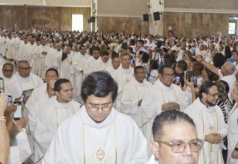 Un coro celestial se escuchó a las 10:00 a.m. en la Catedral metropolitana María Reina mientras 200 sacerdotes de todas las parroquias del Atlántico de ubicaban en el presbiterio con túnicas blancas y en disposición para dar inicio la Misa Crismal, evento anual en el que se bendicen los óleos sagrados utilizados en los sacramentos a lo largo del año.