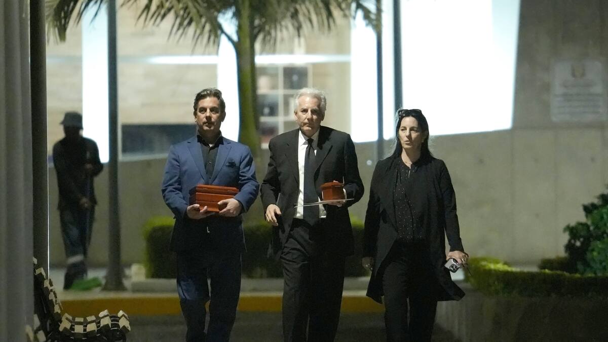 Álvaro y Gonzalo portaban dos urnas, una mayor que otra, mientras que su madre y esposa del literato, Patricia Llosa, los esperaba en el exterior de las instalaciones.