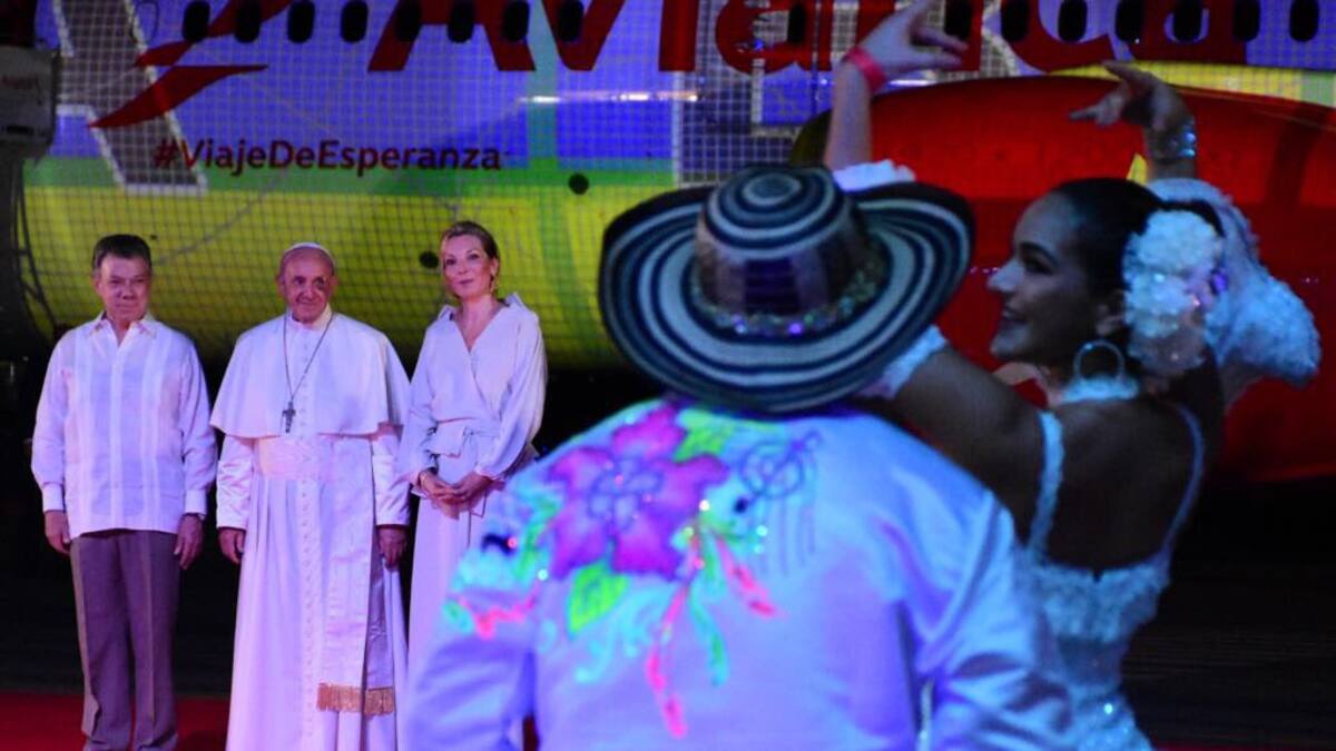 Pero antes de embarcase en el avión, Francisco también se gozó el Carnaval de Barranquilla con una nutrida delegación que viajó desde la capital del Atlántico hasta Cartagena para mostrarle con baile y música porqué las carnestolendas fueron declaradas Obra Maestra del Patrimonio Oral e Inmaterial de la Humanidad.