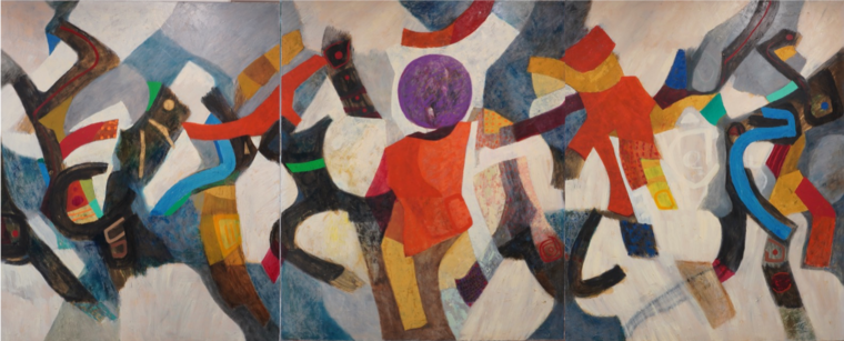 Los signos de estas iconografías del orden cósmico se fusionan con la abstracción geométrica pura de su periodo europeo: rectángulos, triángulos, círculos y semicírculos parecen equilibrarse dentro de diversas estructuras totémicas.
