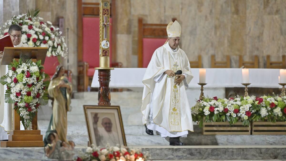 “Pero también hoy nos reunimos en una Iglesia que Dios se saque, para elevar una particular oración y acción de gracias por la vida y el ministerio de nuestro Pastor, el Papa Francisco, a quien el Señor ha llamado a su presencia, a quien el Señor ha asociado a su paz fraterna”.