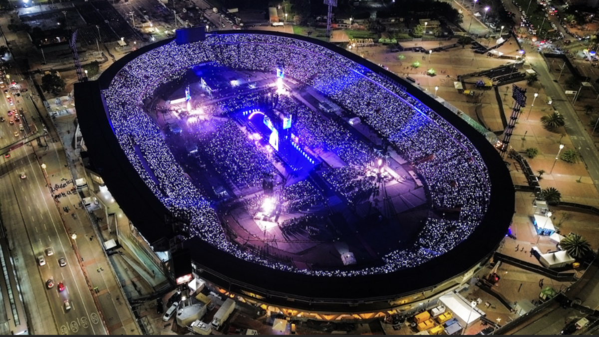 El diseño del show fue una de las mayores apuestas del evento. En formato 360°, el escenario fue concebido como una experiencia inmersiva total, con estructuras únicas traídas especialmente desde Bélgica bajo la dirección artística del reconocido diseñador Alain Corthout. Este formato implicó desafíos técnicos mayúsculos, desde la integración escénica de Maluma y su banda hasta la maximización de la visibilidad desde cualquier punto del estadio. Para lograrlo, se mandaron a fabricar piezas personalizadas que permitieran elevar componentes del sistema de audio y otros elementos clave, priorizando siempre la estética y la conexión directa del artista con el público.