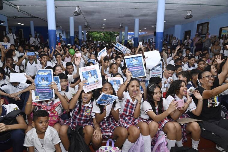 Luego del cercano recibimiento, todos se dirigieron al colegio I.E.D. Simón Bolívar, donde actualmente cursa su bachillerato. Allí todos los estudiantes de la jornada gritaban “Simón se llama”. Mientras tanto, Juan Pablo saltaba de alegría.