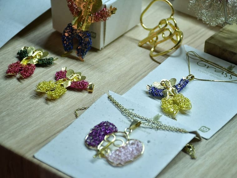 Desde hace más de una década, esta madre e hija han tejido y cincelado collares y aretes que cuentan historias como marimondas del Carnaval, hojas de plátano, cayenas, colibríes, figuras precolombinas y hasta el mapa de Colombia.