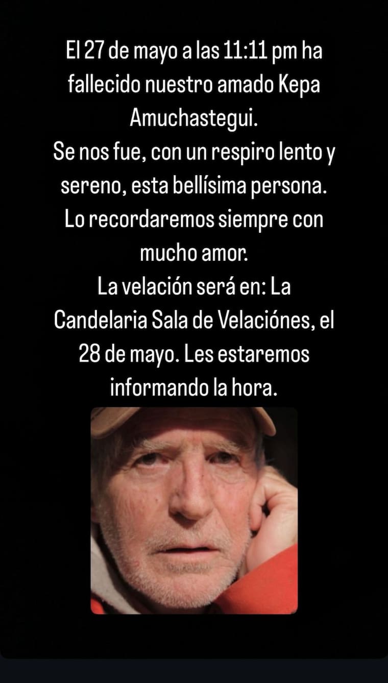 La confirmación de la noticia del lamentable fallecimiento de Kepa Amuchastegui se conoció a través de una historia publicada en su cuenta de Instagram: “Se nos fue, con un respiro lento y sereno, esta bellísima persona”, se lee en el mensaje.