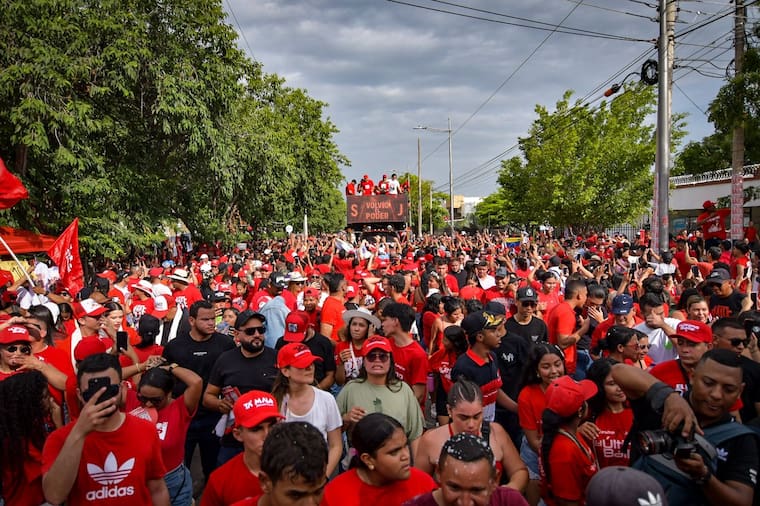 La mancha roja se hizo sentir a partir de las tres de la tarde de este jueves cuando desde el parque El Viajero salieron los tráilers y carrozas que acompañaron a los músicos en su recorrido de 2,7 kilómetros de pura sabrosura hasta llegar a la glorieta de La Pionera Mayor.