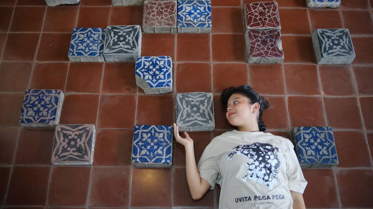 La artista emergente, Ilang Ilang Urueta, explicó que su obra refleja una mirada crítica y poética sobre los pisos y baldosas de Barranquilla, elementos cotidianos que considera cargados de memoria, historia e identidad. A través de su propuesta, invita a reflexionar sobre lo que muchas veces parece superficial, pero que en realidad revela desigualdades sociales, raíces culturales y significados profundos.