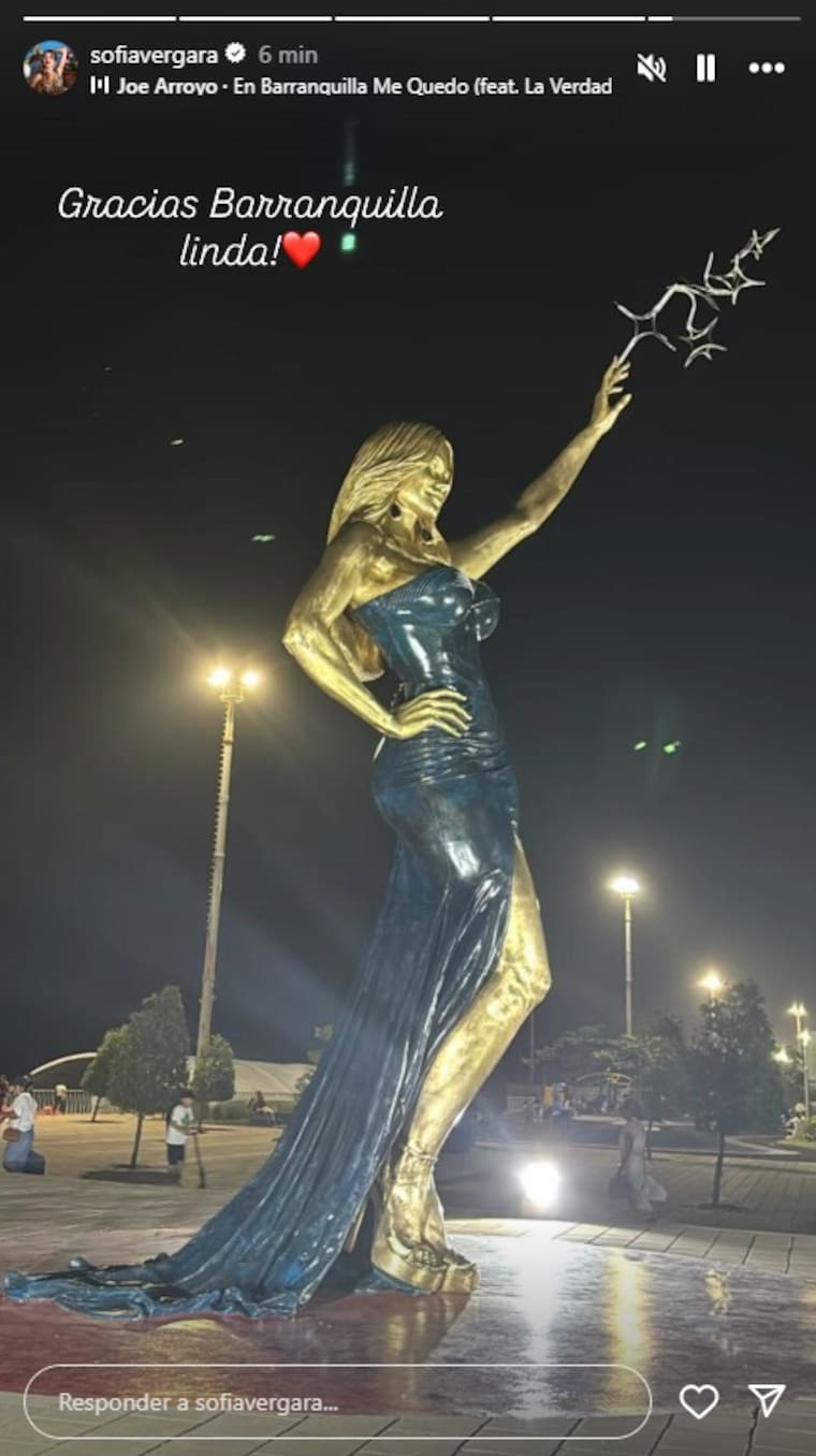 Además, a través de sus historias, en la misma red social, la actriz compartió una fotografía de la estatua acompañada con otro mensaje más de agradecimiento: “¡Gracias, Barranquilla linda!”.