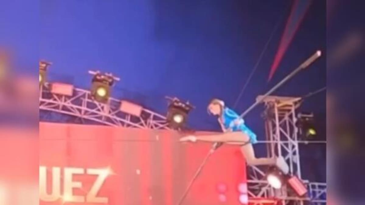 El hecho ocurrió durante una función de este domingo 31 de agosto, en Cali, cuando la acróbata, quien vestía un traje azul, realizaba una de las peligrosas maniobras. El angustiante momento quedó registrado en video y se hizo viral en redes sociales.
