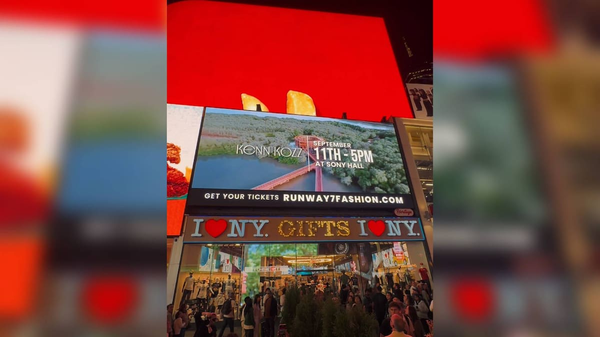 Entre imágenes de Barranquilla y la bandera, en el billboard se mostró la invitación a la pasarela que tendrá lugar este jueves, 11 de septiembre, a las 5:00 p. m. en el Sony Hall de Nueva York.