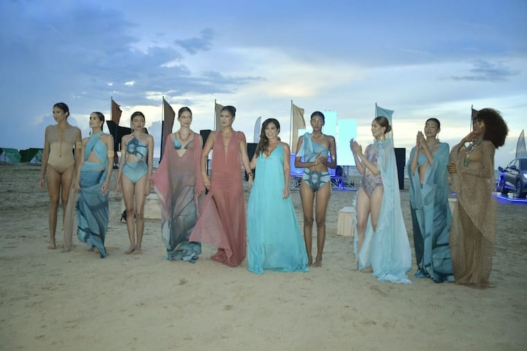 “Yo me inspiro en la mujer libre, en la mujer que se cuida, en la mujer que le encanta verse maravillosa, como la mujer barranquillera. La mujer costeña es una mujer que camina con un don aire fabuloso, la brisa, se siente segura. Y es eso, yo siempre le he hecho honor al mar con mis colecciones y me hace feliz, porque ahora lo puedo mostrar aquí en un escenario perfecto como es Puerto Mocho”, expresó.
