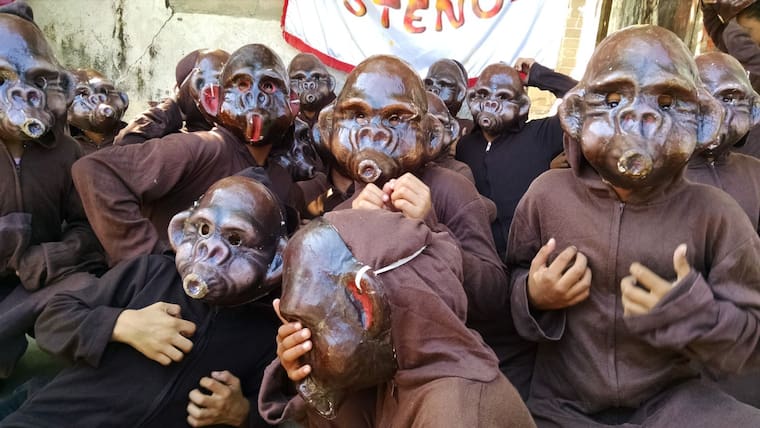 El disfraz de los Micos y Micas está conformado por un enterizo de pantalón y camisa marrón, una máscara hecha en papel maché, una cola y, para las ‘micas’, una falda.