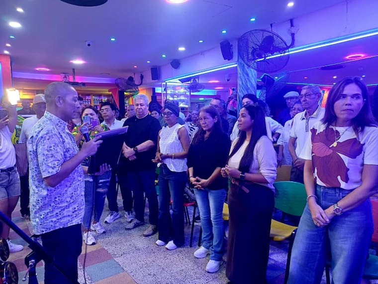 El secretario distrital de cultura, Juan Carlos Ospino y gerente de ciudad, Ana María Aljure, leyeron y entregaron a los familiares del carismático hombre de negocios el decreto No. 0704 de 2025, a través del cual se destacó la labor de gestor cultural y musical de Edwin Madera.