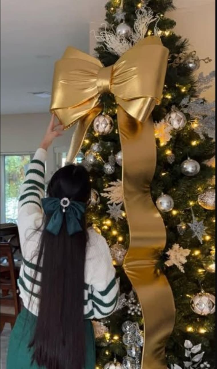 Además, la tendencia no se limita a la parte superior, los lazos pequeños también se usan en todo el árbol, reemplazando las esferas o combinándose con ellas para aportar textura y dinamismo. ¿Se atrevería a usarlo este 2025?